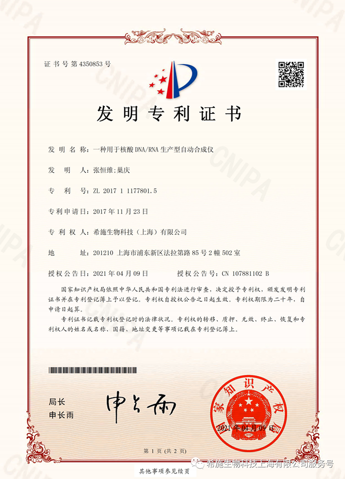 CSBio received the Patent authorization notice issued by the State Intellectual