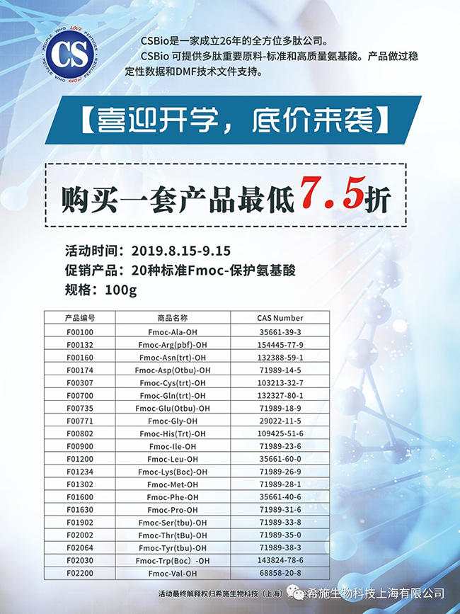 3) Peptide raw material -- High Quality Standard Grade and High Grade Fmoc-protected Amino Acid, peptide reagents, coupling reagents, resins and special reagents, supported by relevant validated QC data, stability data and DMF technical documents.