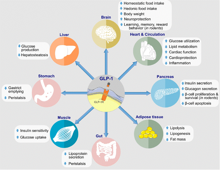 GLP-1从最初作为一个血糖调节因子为人所熟知,到如今,在糖尿病、心血管疾病、阿兹海默及抑郁症、肾病和肝脏疾病、关节炎等领域都有所作为。