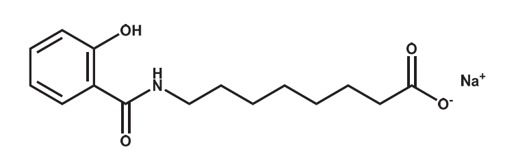 SNAC是具有两亲性的水杨酸的N-乙酰化氨基酸衍生物。口服片剂的具体给药过程也可以大致分为三步:“胃酸侵蚀”“药物释放”与“药物吸收”。每一步SNAC都发挥了重要的作用。 首先是药片在胃中迅速侵蚀,作为肽类很怕胃分泌的蛋白酶降解,于是SNAC通过高浓度的释放帮助中和药片附近胃液的pH,降低胃蛋白酶的活性,可分子间作用力让很多个肽聚在了一起;之后 SNAC通过改变片剂溶解的溶液极性来削弱疏水相互作用,从而促进单体化,以便于更好地吸收;最后, SNAC还会被结合到脂质膜中增加胃上皮膜的流动性,从而允许经细胞通道进入体循环,进而发挥药效。
